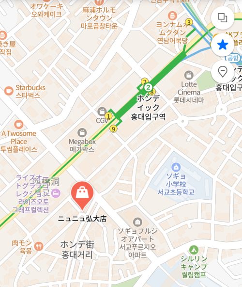 最寄駅/出口 弘大入口(ホンデイック)駅9番出口から徒歩4分